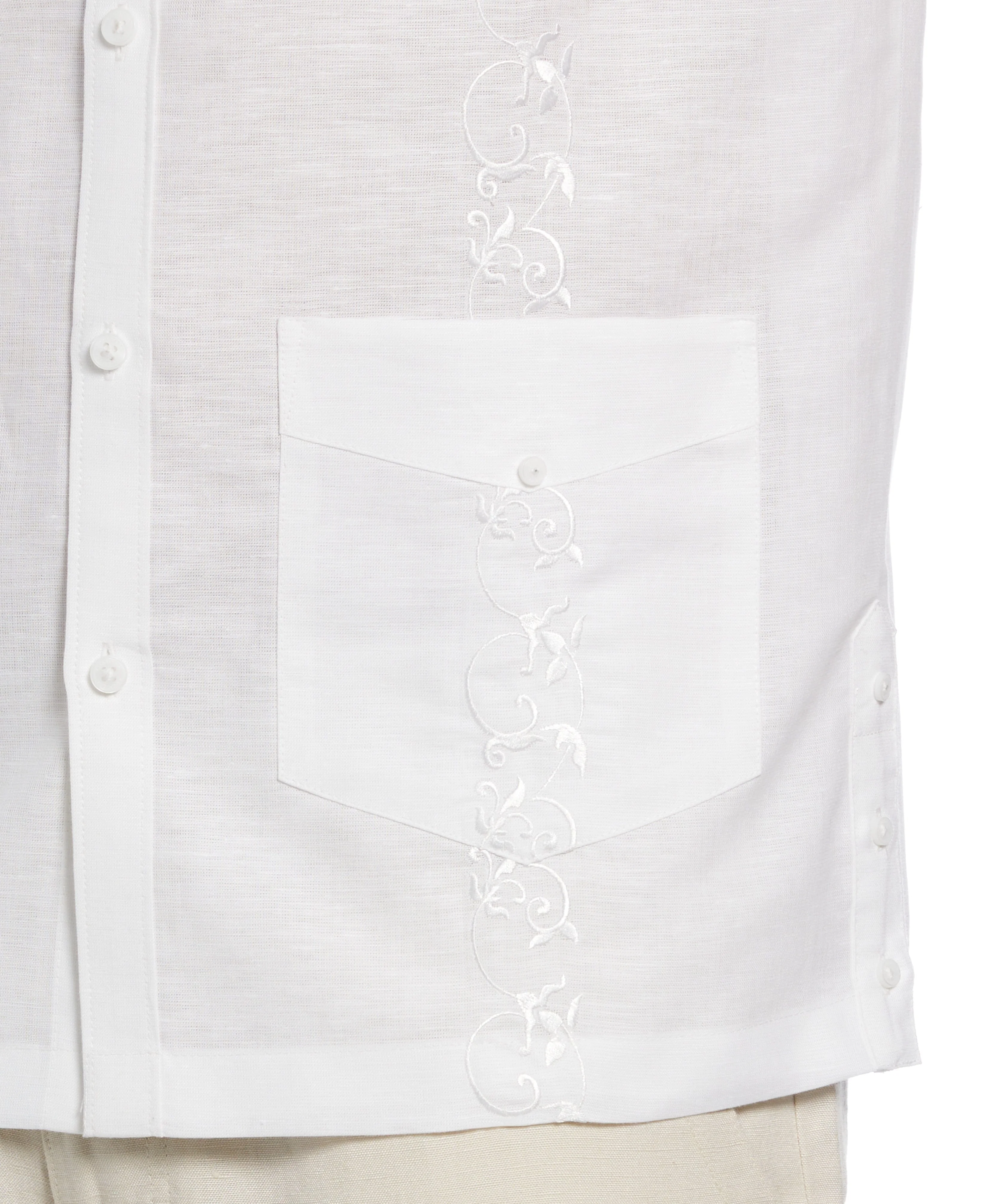 Crafted from a breathable linen blend fabric that’s perfect for warmer climates, this men’s guayabera shirt from Cubavera will keep you looking and feeling cool at work and on the go. Four buttoned pockets and matching tonal embroidery capture the classic guayabera look and add a subtle boost of style. The men’s short sleeve shirt is made with a tight plain weave pattern for impressive durability, and it’s finished with a sharp point collar.