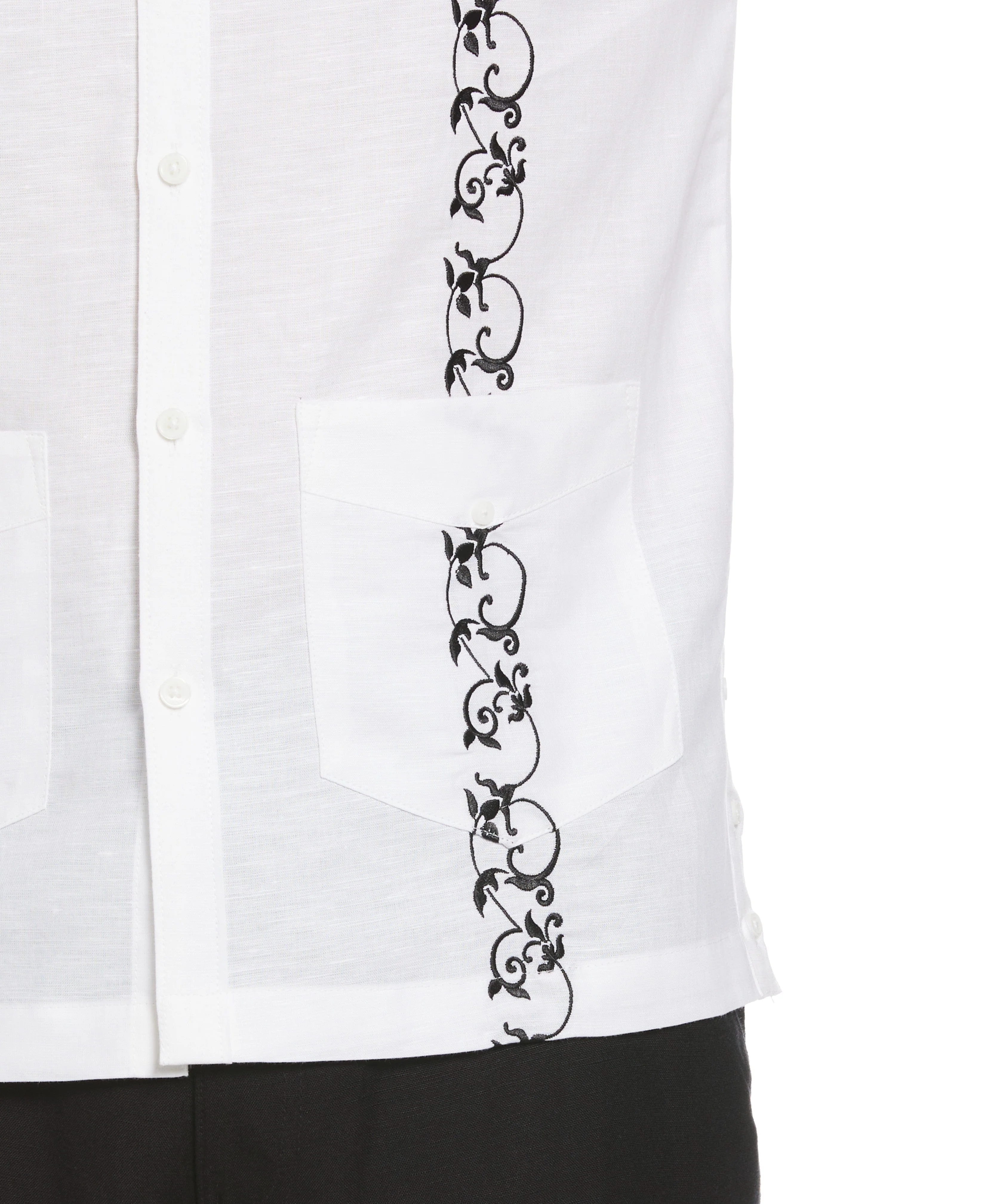 Linen Blend Contrast Embroidery Guayabera Shirt