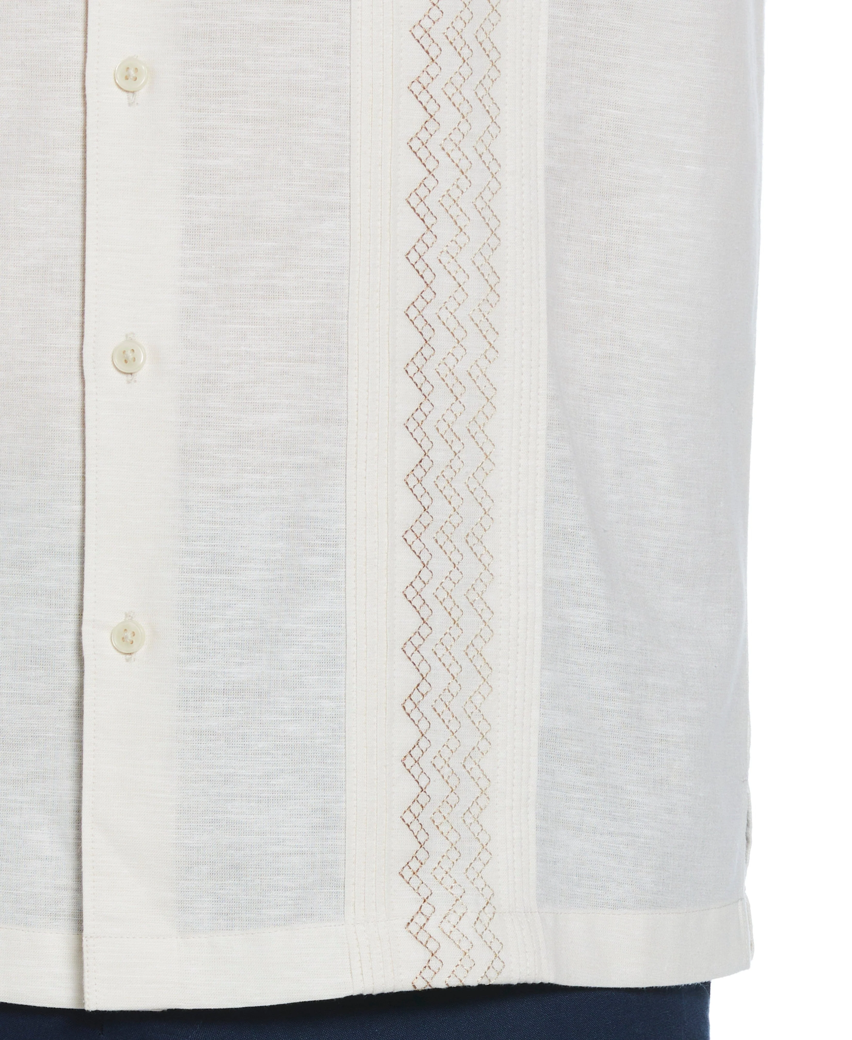 Polish up your everyday looks with this Cubavera men's short sleeve button up shirt. A linen-cotton blend delivers breathable comfort, while the plain weave fabrication ensures enhanced durability for lasting wear. Vertical embroidered striping adds texture and structure for sophisticated styling. A classic point collar is the finishing touch on this versatile short sleeve button up.