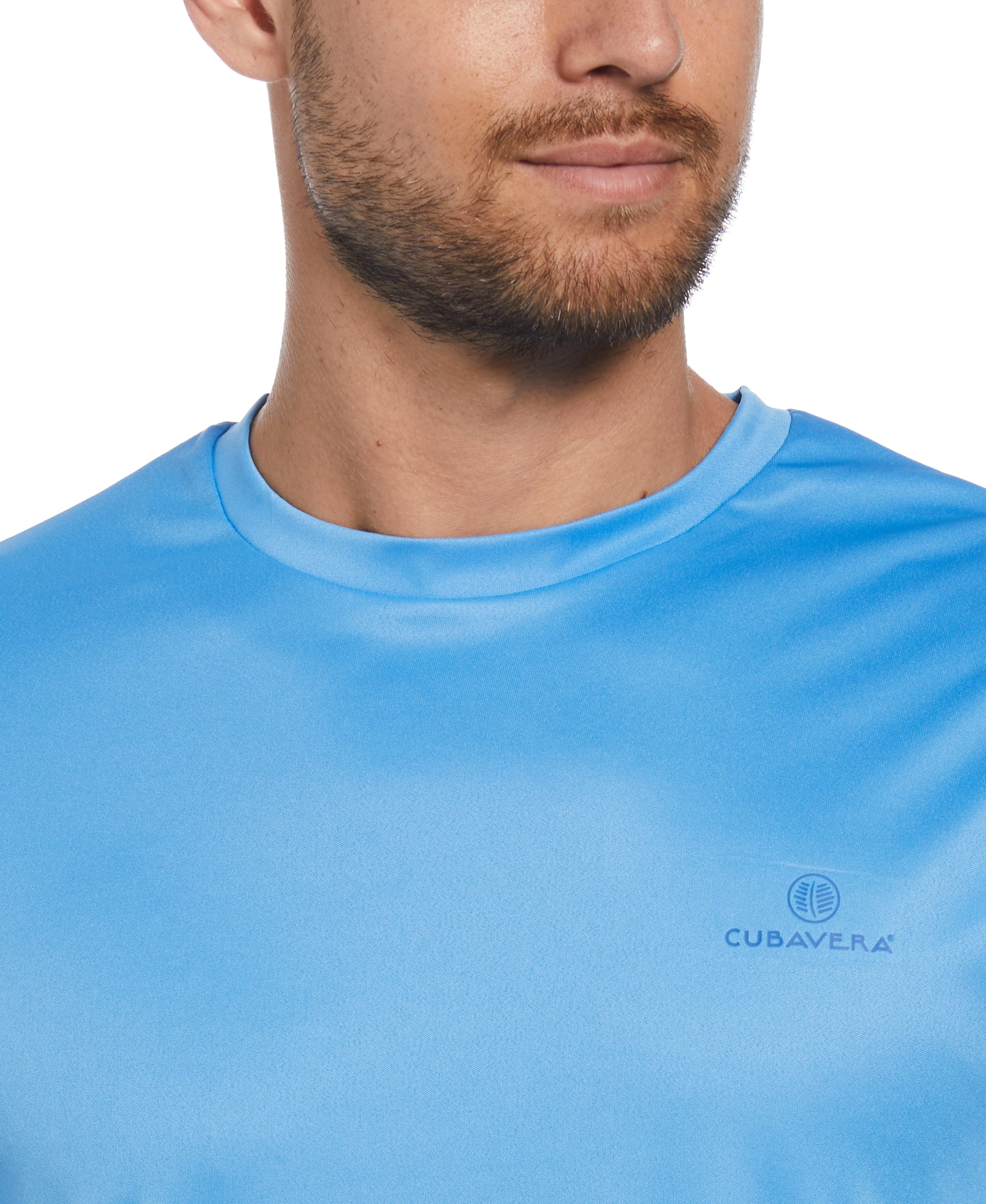The back of this Cubavera men’s long sleeve shirt pops with a fun and fashionable paradise print. Double-knit fabric with added stretch provides a fit that moves with you and moisture-wicking properties keep you feeling cool and comfortable. This crew neck shirt offers innovative sun protection from damaging UV rays so you can soak up the sun safely. Pair it with your favorite Cubavera pants or shorts for a cool, casual look that has you covered.